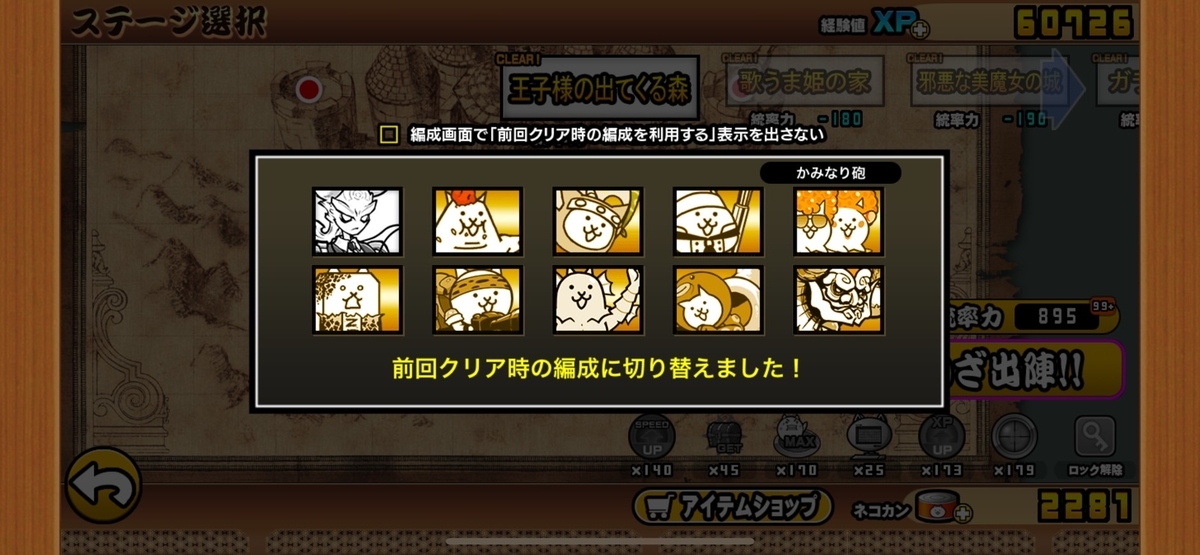 このステージでは、呪い砲を発射してくる「わんこ城」が(恐らく)初登場する。発射の頻度はそれほど高くはないものの、意外と面倒。大狂乱のゴムネコとねこタコつぼの2体でも前線が少し不安定だったため、さらに壁役のにゃんこを入れても良いかもしれない。