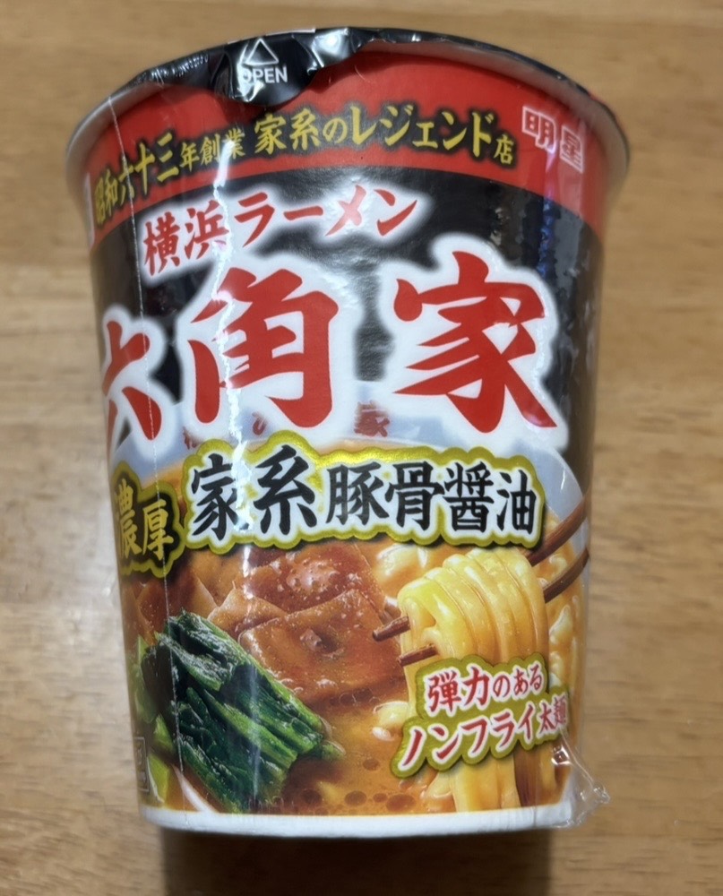 昼下がり、食い物を探しにセブンイレブンに寄ったが弁当を選ばず、カップ麺コーナーに陳列されている「横浜ラーメン六角家 濃厚家系豚骨醤油ラーメン」というものを購入。セブンプレミアムという限定の響きに負けた。