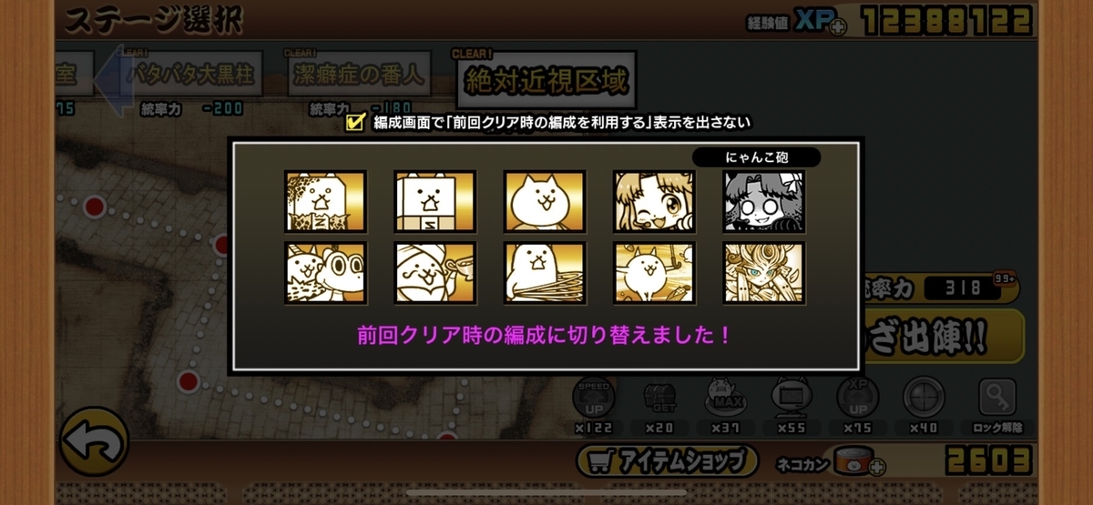 ダテメガネルさえ倒せたら、後は運勝負。「クリティカル・中」のにゃんコンボも発動していたので、どんどんクリティカルが発生してメタルの敵も昇天。やはり、ダテメガネルが最大の強敵と言えるだろう。